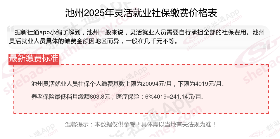 一、2025年池州灵活就业人员社保养老+医保缴费标准一年多少钱?
