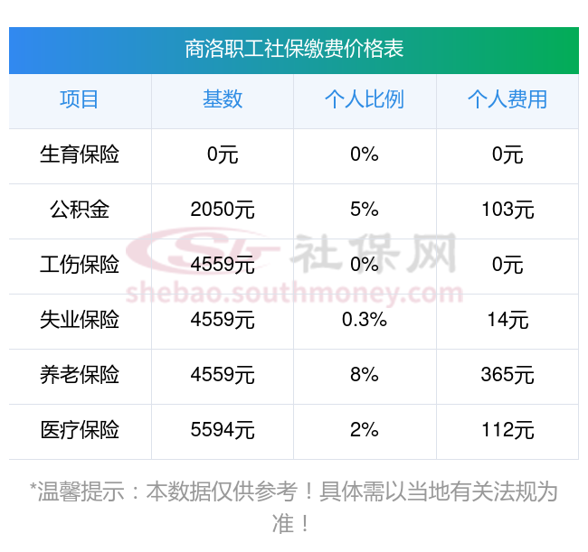 2025年商洛社保缴费多少钱?下表是2024-2025年商洛社保费用明细参考,新社通app-社保缴费查询工具提供的最新数据如下: