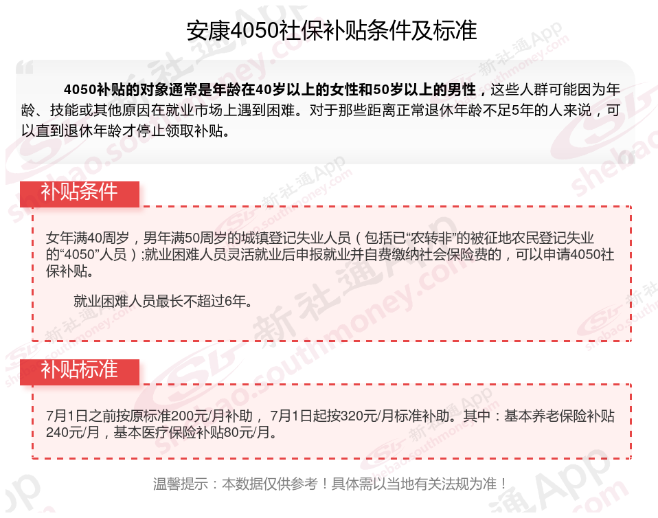 2025安康4050补贴主要针对的是年龄在40岁以上的女性和50岁以上的男性,这些人群通常因为年龄较大而面临就业困难。