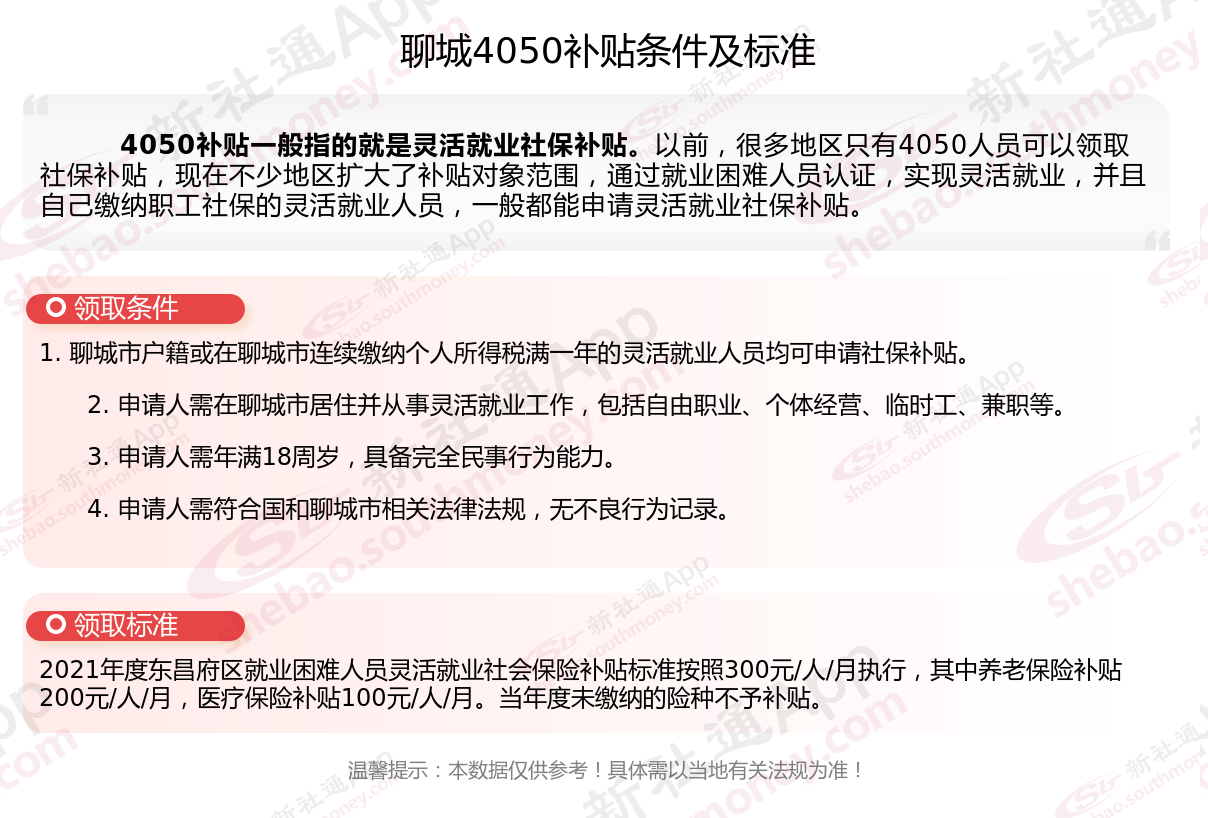 二、2025年聊城4050社保补贴多少钱?4050社保补贴领取条件什么?