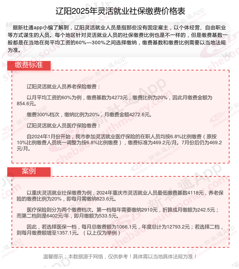 三、辽阳2025年灵活就业社保缴费基数及比例最新消息