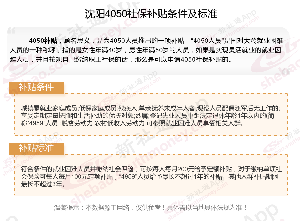 2025沈阳4050补贴主要针对的是年龄在40岁以上的女性和50岁以上的男性,这些人群通常因为年龄较大而面临就业困难。