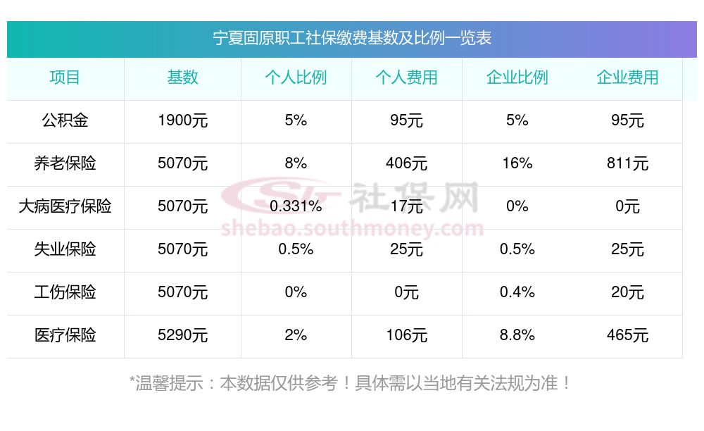 宁夏固原社保多少钱一个月?下面和新社丫丫一起来看看宁夏固原最低标准社保费用明细参考,新社通app-社保缴费查询工具提供的最新数据如下:
