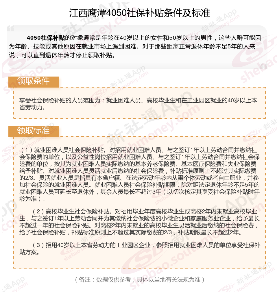 一、2025年江西鹰潭4050社保补贴标准,最新领取条件来了
