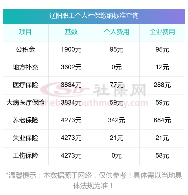 2025年辽阳五险缴费标准是多少,2025年辽阳社保缴费多少钱?下表是2025年辽阳社保费用明细参考,新社通app-社保缴费查询工具提供的最新数据如下: