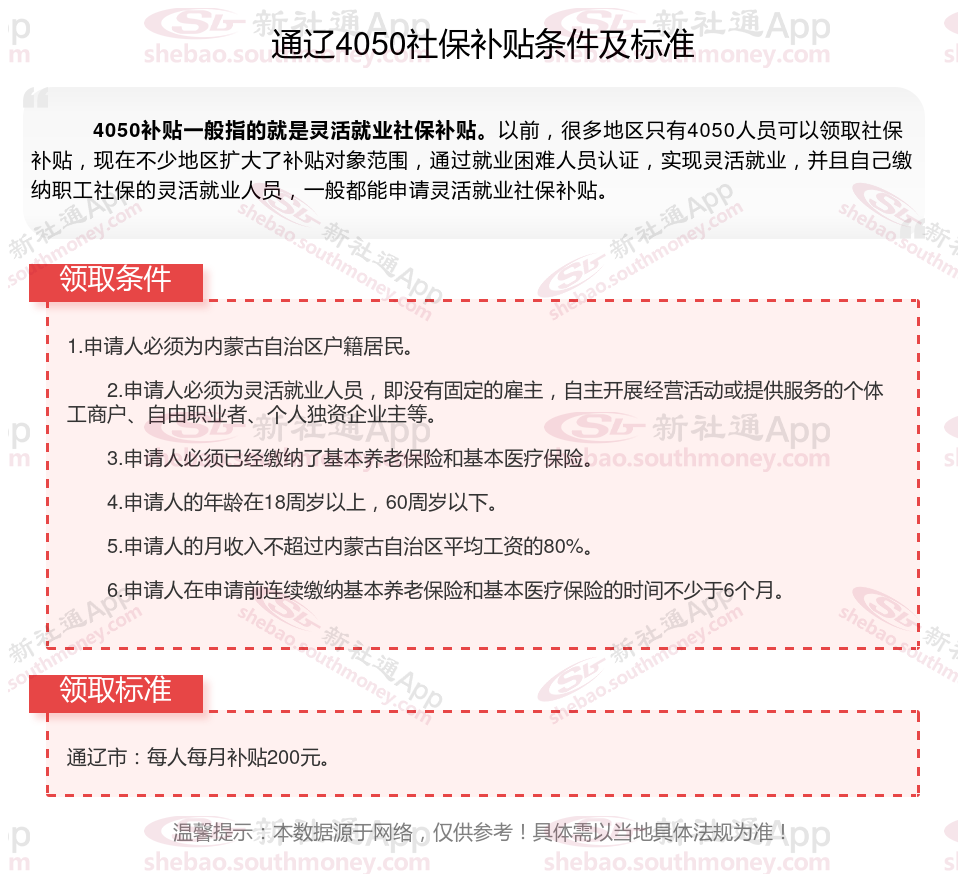 一、2025年通辽4050社保补贴新规2025年通辽4050社保补贴标准是什么,需要什么条件?