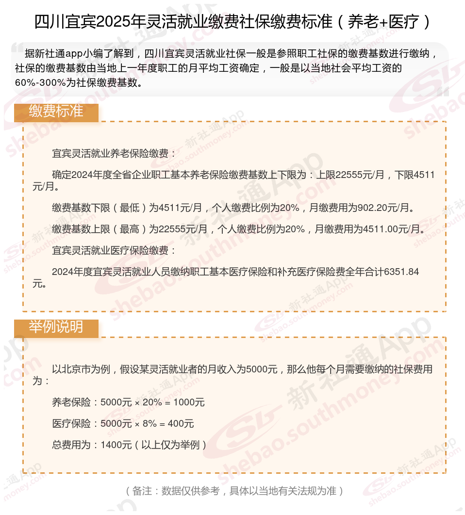 据新社通app数据显示,2024-2025年四川宜宾灵活就业人员养老保险的缴费标准: