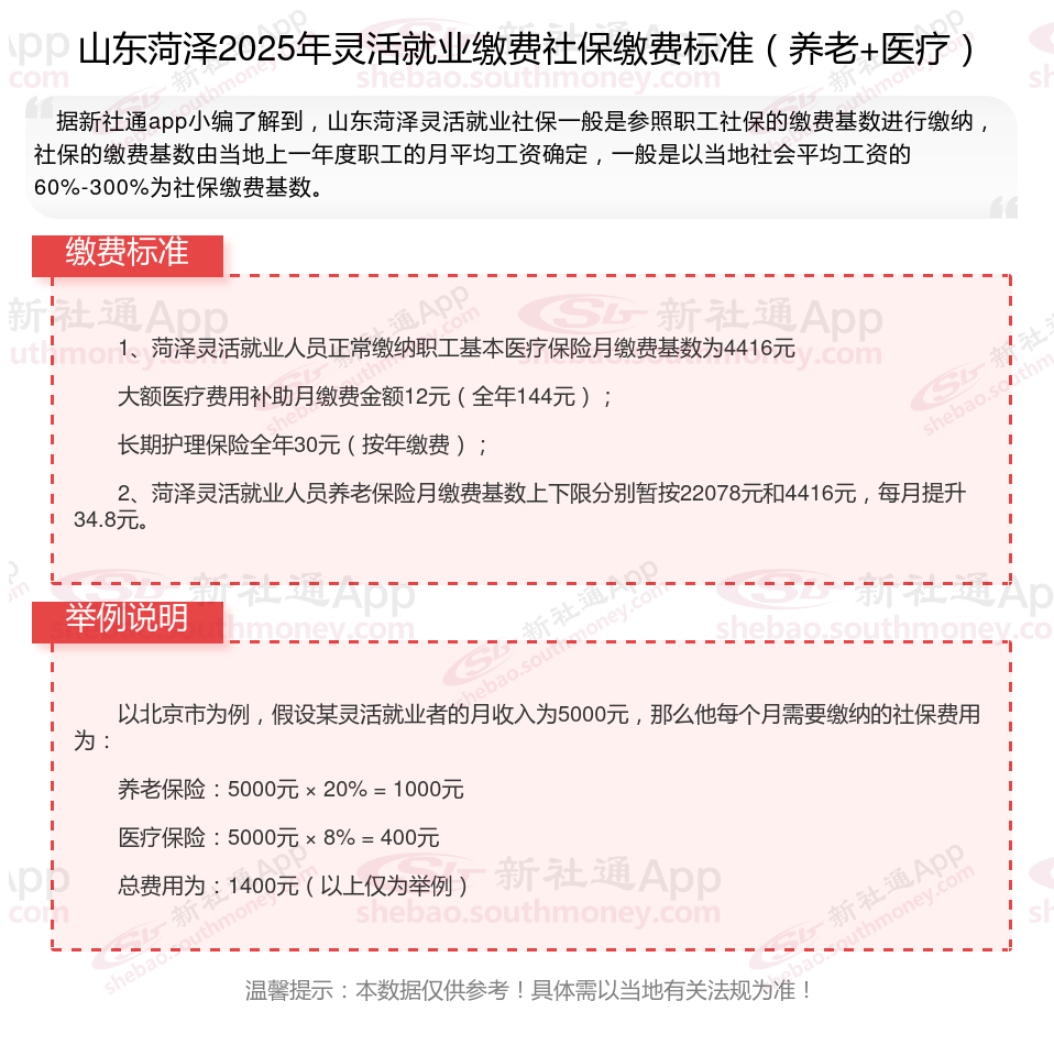 2025年山东菏泽灵活就业缴费标准个人交多少呢, 个人是可以自己交社保的吗?根据新社通app-社保缴费查询工具提供的最新数据如下: