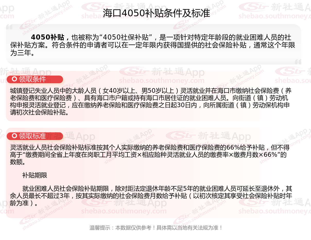 2025海口灵活就业4050社保补贴是一项面向特定年龄段的就业困难人群的社会保险补贴。