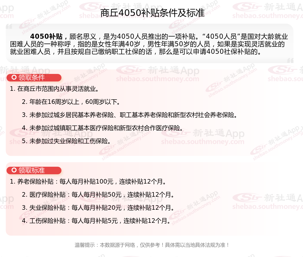 2025商丘4050补贴主要针对的是年龄在40岁以上的女性和50岁以上的男性,这些人群通常因为年龄较大而面临就业困难。