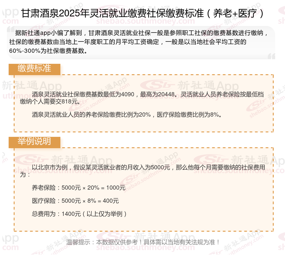 以上就是甘肃酒泉灵活就业社保缴费的全部内容,数据及内容供参考!希望对你有帮助,欢迎关注新社通解锁更多社保专业资讯。