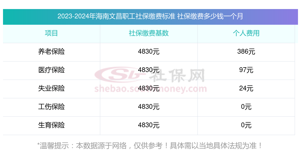 2025年海南文昌社保缴费价格,2025年海南文昌社保缴费多少钱?下表是2025年海南文昌社保费用明细参考,新社通app-社保缴费查询工具提供的最新数据如下: