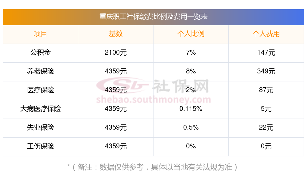 2025年重庆社保缴费多少钱?下表是2024-2025年重庆社保费用明细参考,新社通app-社保缴费查询工具提供的最新数据如下: