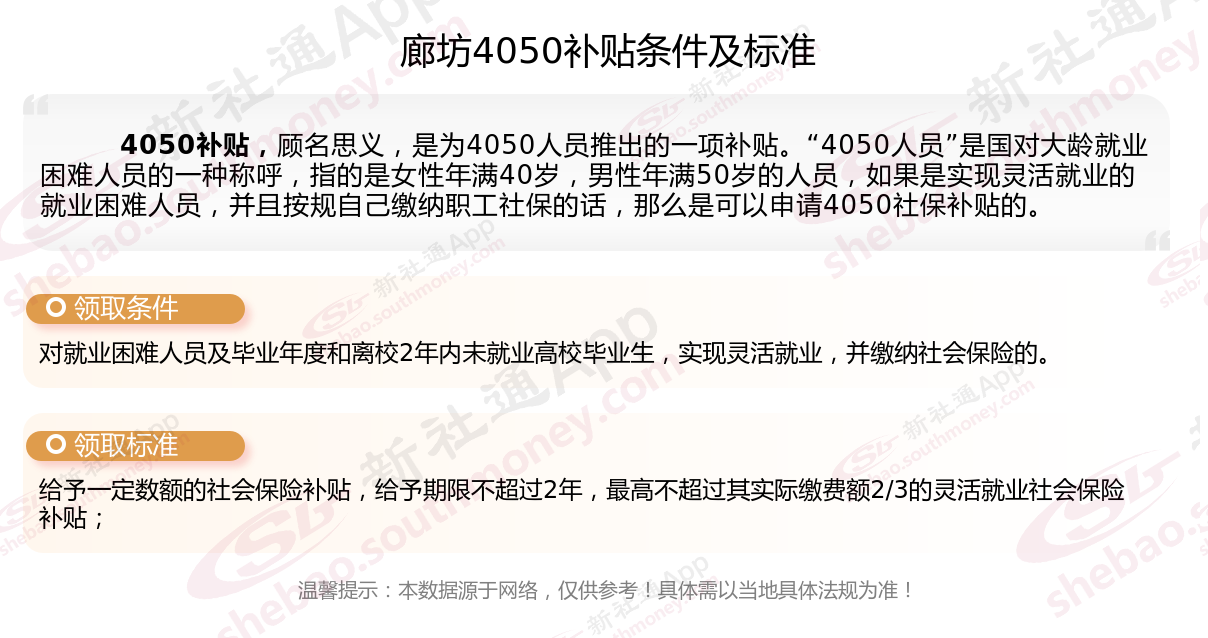 2025廊坊4050补贴主要针对的是年龄在40岁以上的女性和50岁以上的男性,这些人群通常因为年龄较大而面临就业困难。