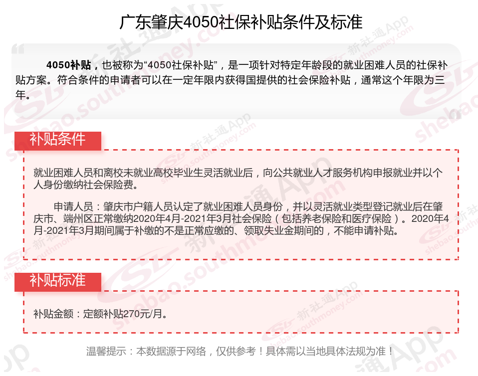 一、2025年广东肇庆灵活就业4050社保补贴标准和条件是什么