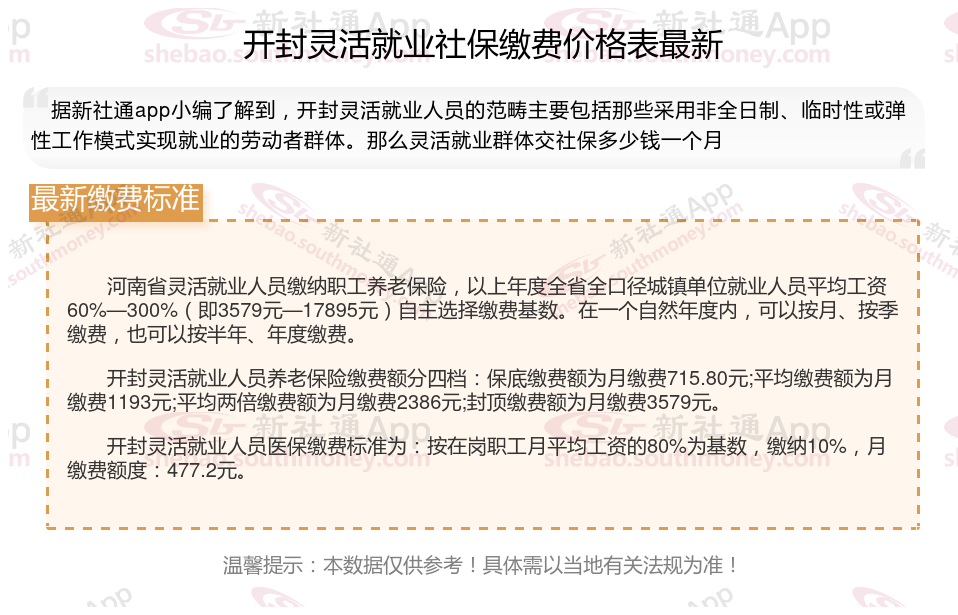 据新社通app数据显示,开封灵活就业养老保险缴费基数2024-2025年最新标准如下: