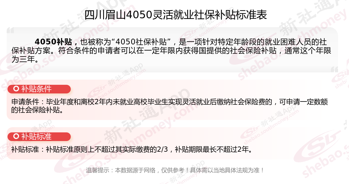 二、2025年四川眉山4050社保补贴标准是多少,最新4050社保补贴领取条件来了