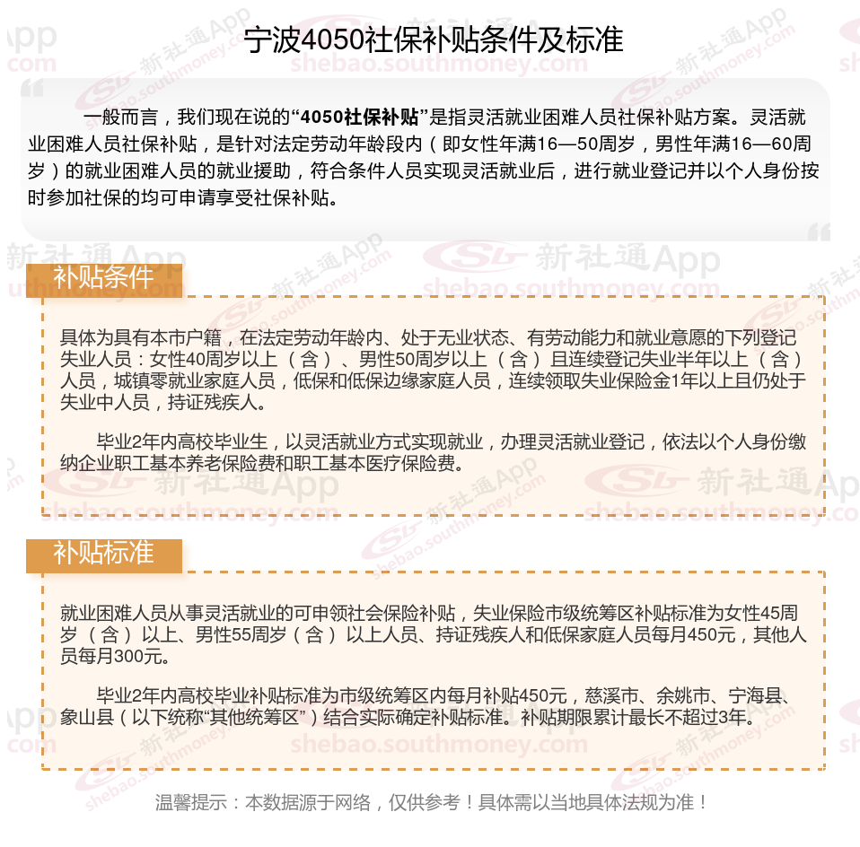 二、宁波4050社保补贴标准及条件2025年,最新如下