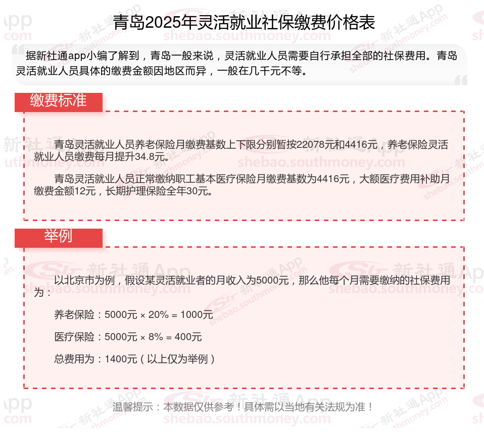 据新社通app数据显示,青岛灵活就业养老缴费基数明细如下: