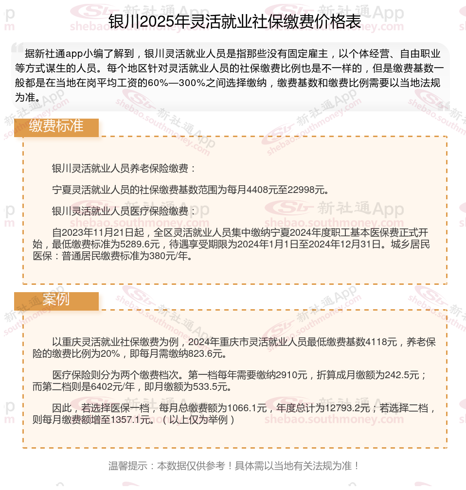 据新社通app数据显示,银川企业灵活就业养老保险的缴费基数为:5070元。