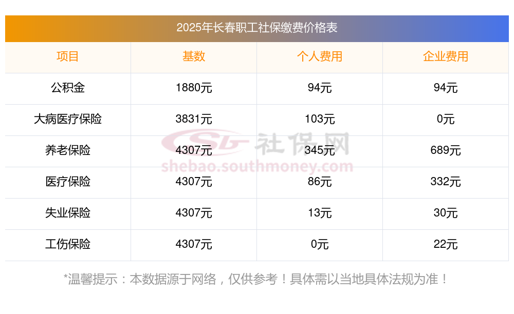 2025年社保多少钱一个月?下表是2024-2025年长春社保费用明细参考,新社通app-社保缴费查询工具提供的最新数据如下: