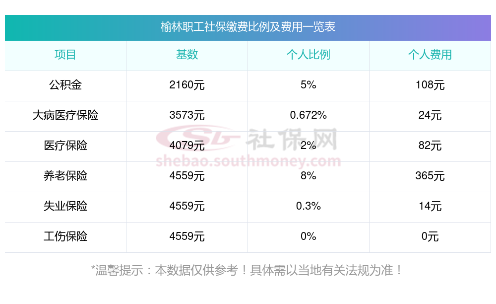 榆林缴费社保比例一览 社保公司和个人各交多少?下表是2024-2025年榆林社保费用明细参考,新社通app-社保缴费查询工具提供的最新数据如下: