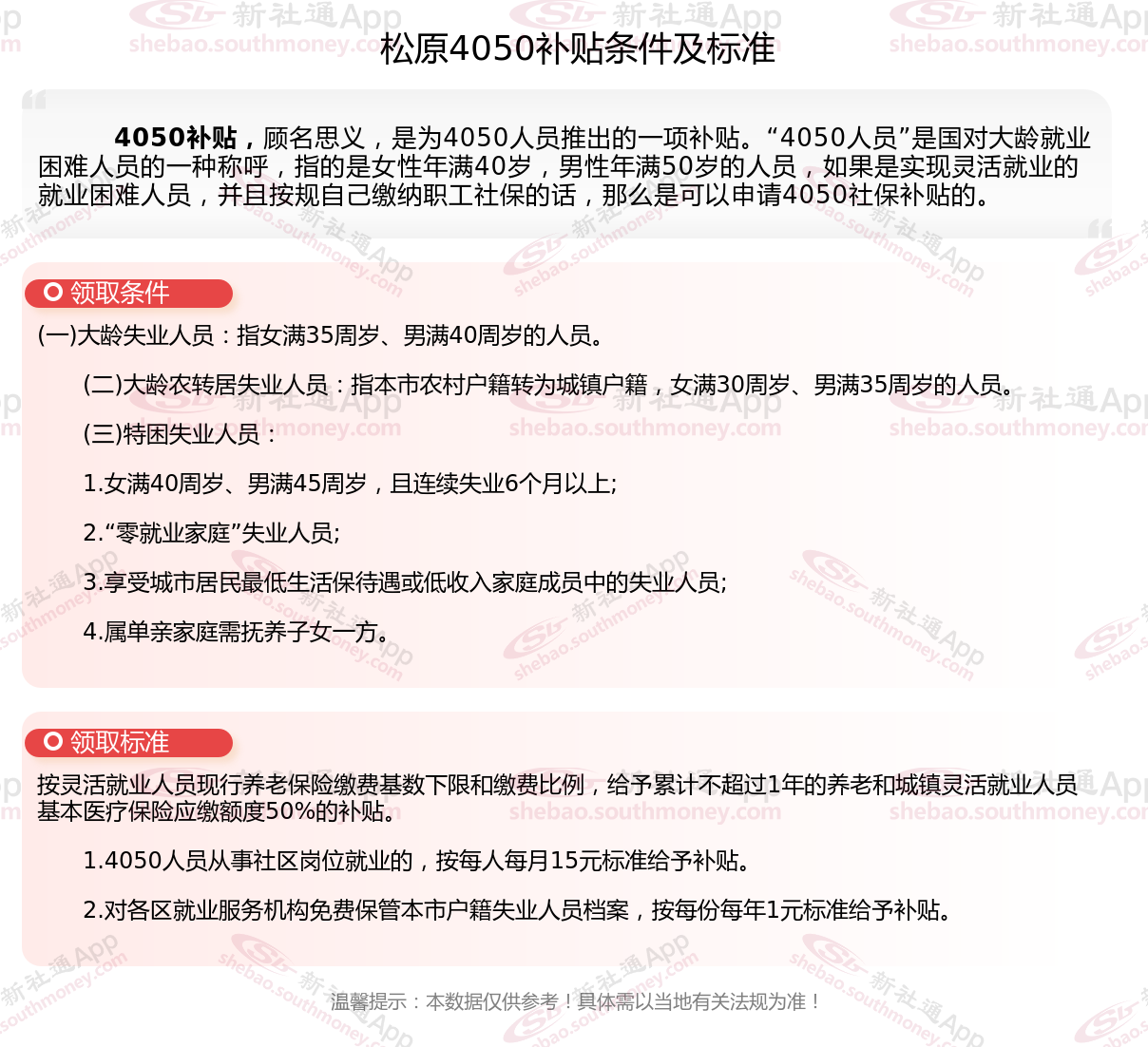 二、松原4050社保补贴标准及条件4050社保补贴,最新如下