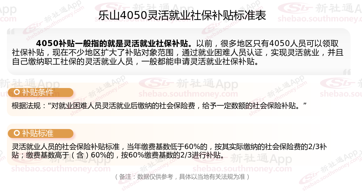 一、2025年乐山灵活就业4050社保补贴标准最新是多少?