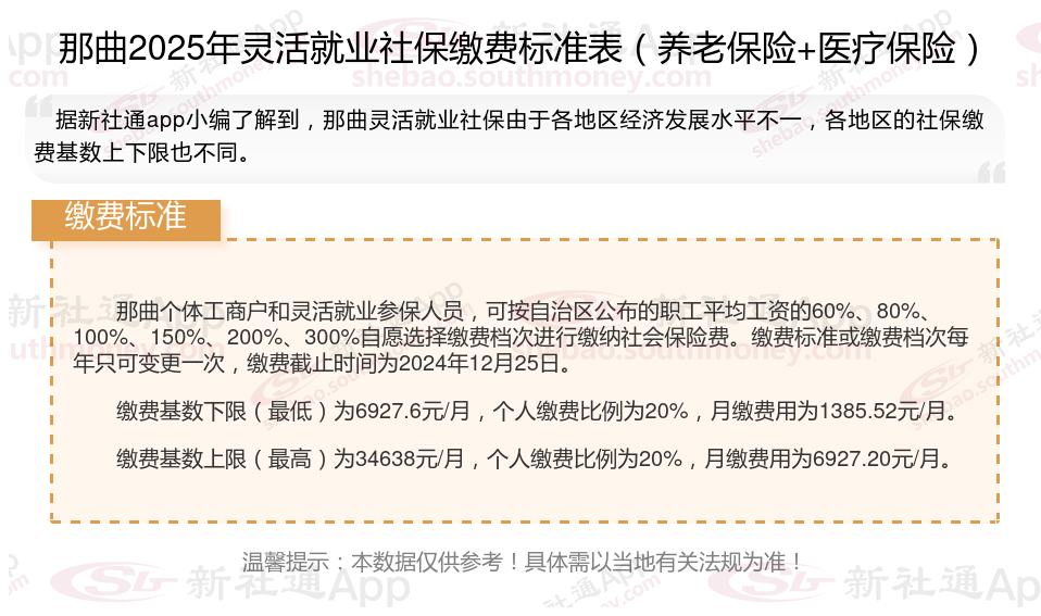 灵活就业人员缴纳社保比例是多少?一般需要交多少钱一个月?根据新社通app-社保缴费查询工具提供的2025社保缴费标准详情数据: