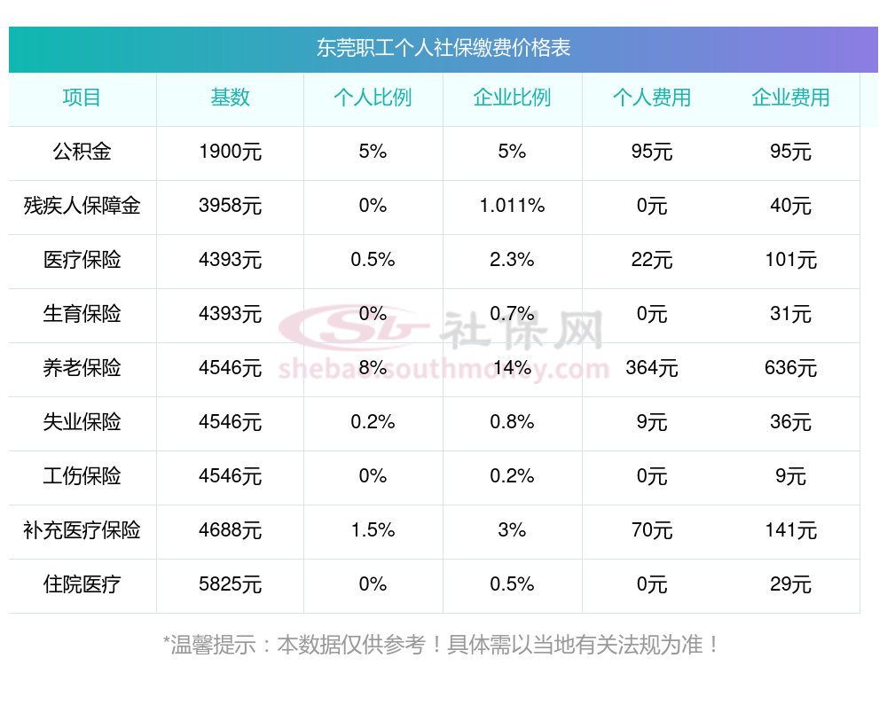 东莞五险最少要交多少钱一个月多少钱?下表是2024-2025年东莞社保费用明细参考,新社通app-社保缴费查询工具提供的最新数据如下: