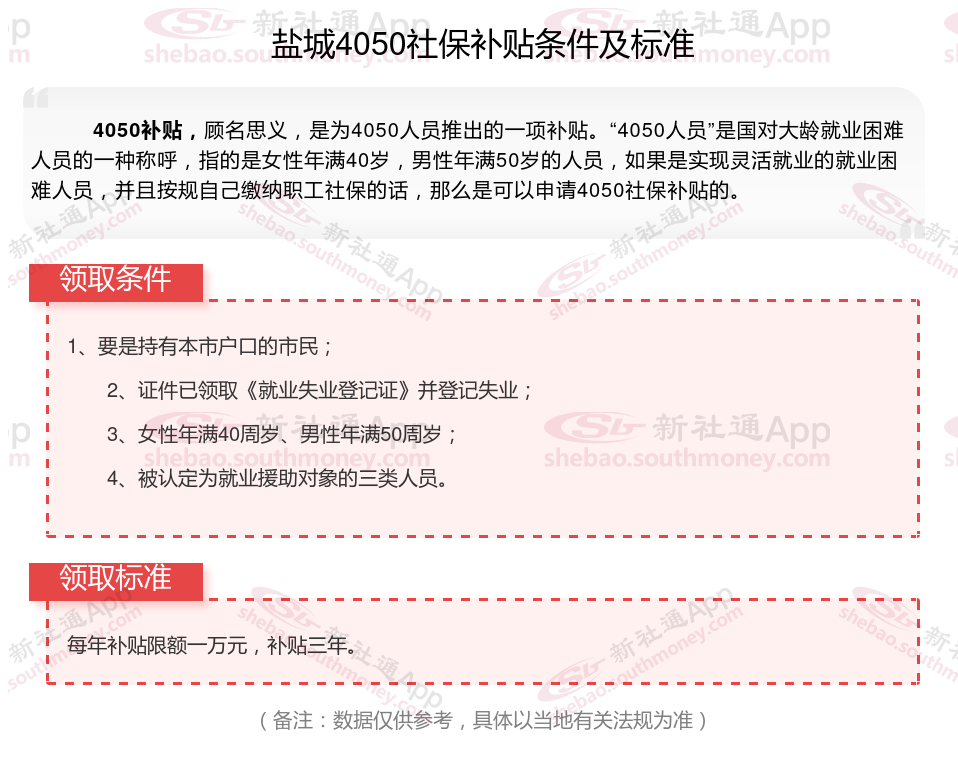 一、盐城4050社保补贴标准及条件2025年最新消息