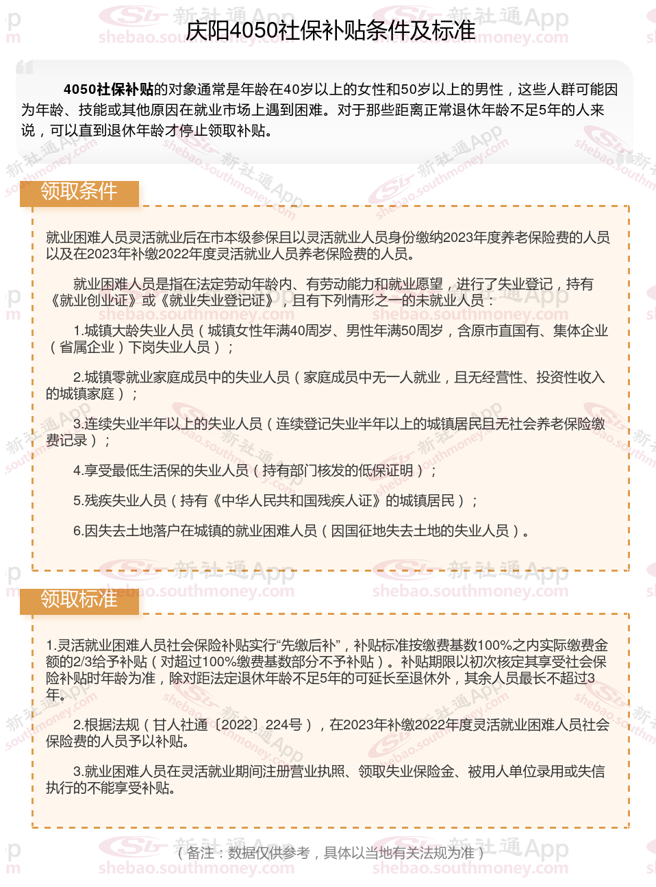 一、2025年庆阳灵活就业4050社保补贴标准及条件是什么