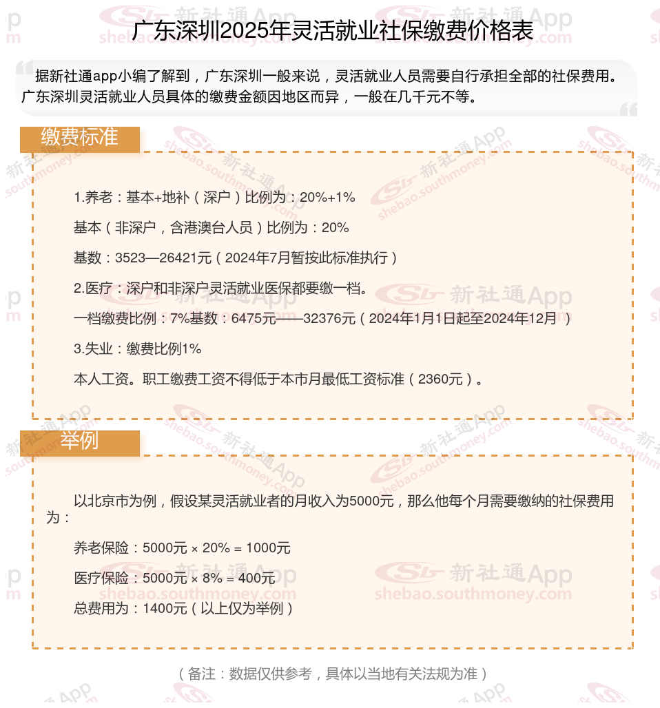 一、2025年广东深圳灵活就业社保缴费标准公布啦 广东深圳灵活就业社保多少钱一个月?