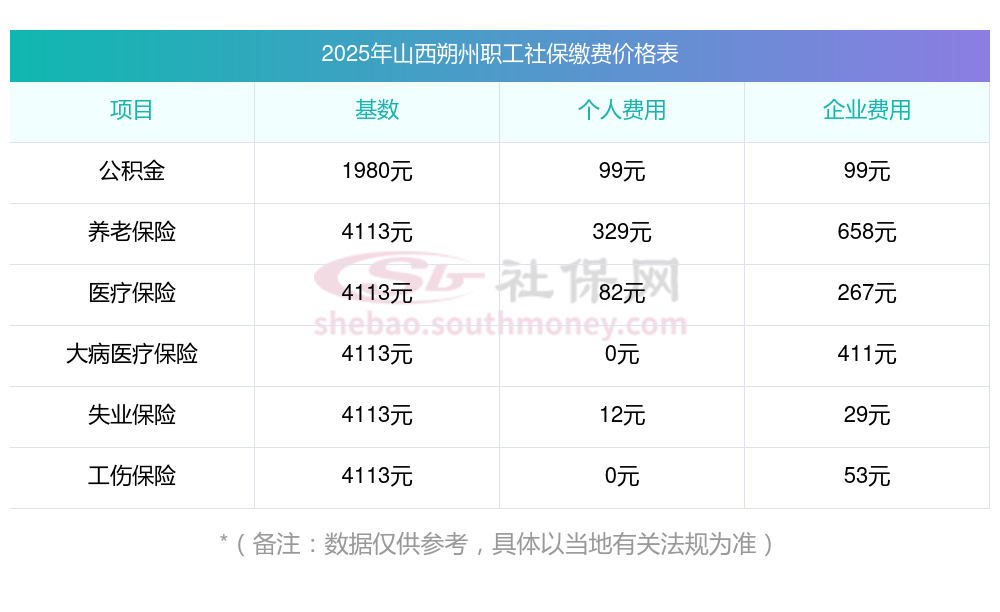 山西朔州五险一金交多少钱一个月?和新社小编一起来看看2024-2025年山西朔州最低社保费用明细参考,新社通app-社保缴费查询工具提供的最新数据如下:
