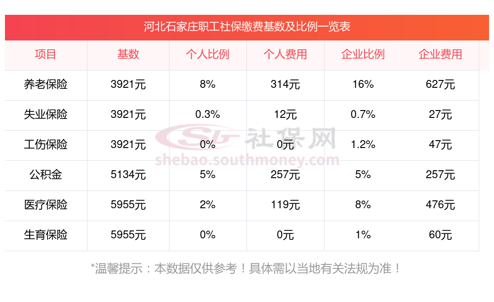 根据新社通app-社保缴费查询工具提供的最新数据,河北石家庄社保缴费比例社保缴费比例包括以下几个部分:
