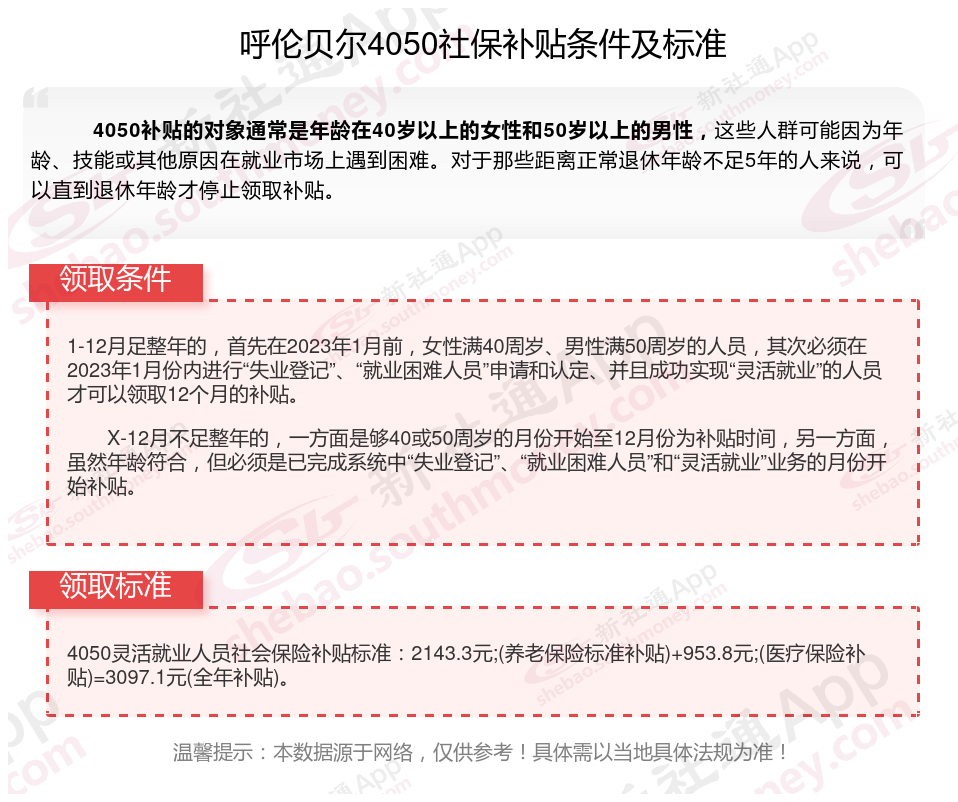 二、呼伦贝尔4050社保补贴标准及条件2025年最新消息