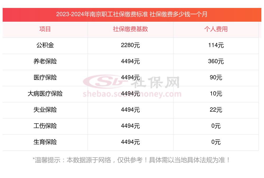 南京社保一个月交多少钱,个人可以缴纳社保吗??下面和新社通APP一起来看看南京最低标准社保费用明细参考,新社通app-社保缴费查询工具提供的最新数据如下: