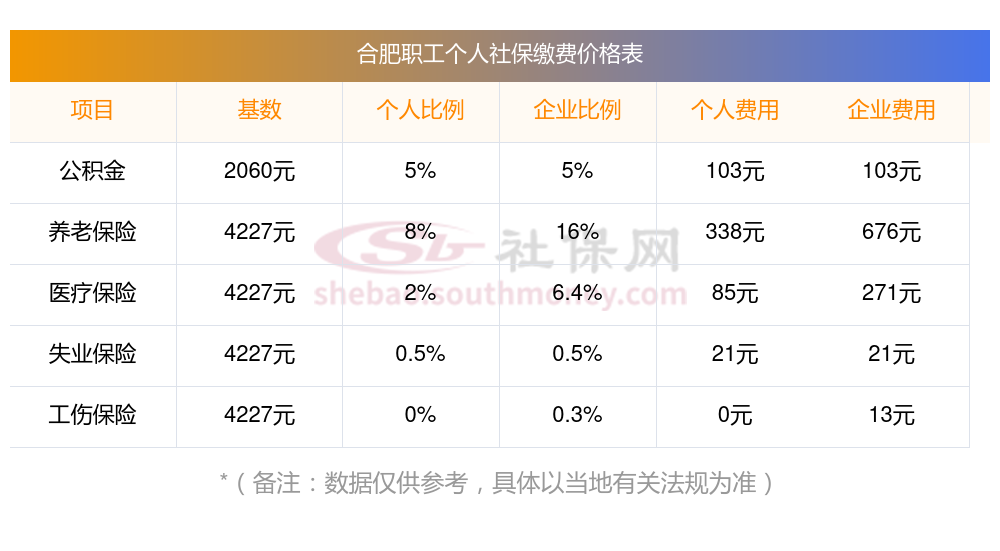2025年合肥社保缴费多少钱?下表是2024-2025年合肥社保费用明细参考,新社通app-社保缴费查询工具提供的最新数据如下: