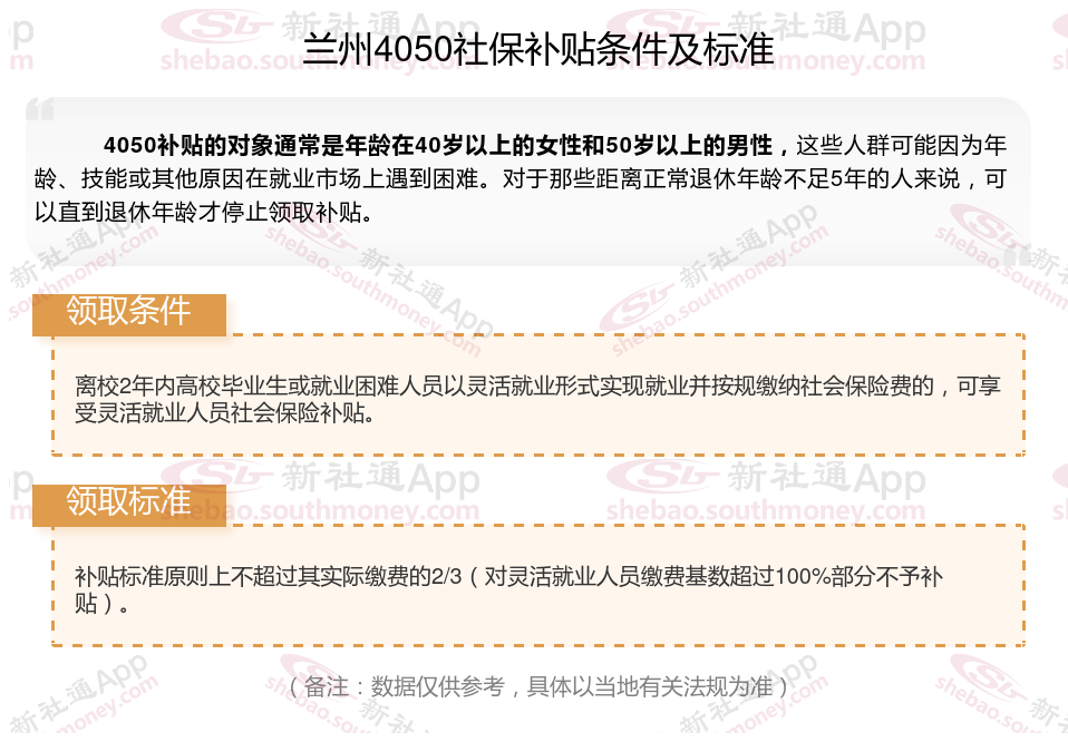 二、2025年兰州4050社保补贴标准是多少?领取条件是什么?