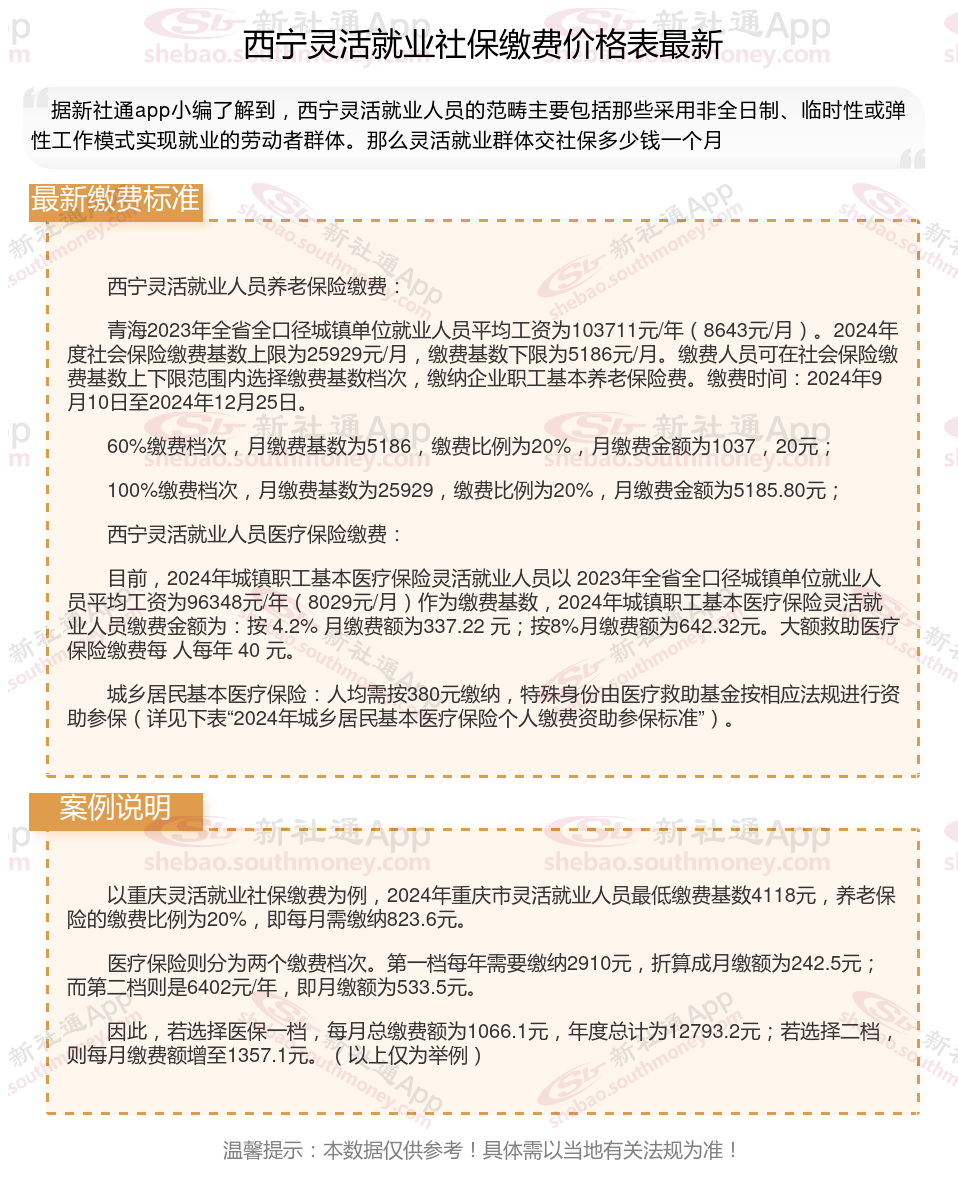 2025年西宁灵活就业缴费标准个人交多少呢, 个人是可以自己交社保的吗?根据新社通app-社保缴费查询工具提供的最新数据如下: