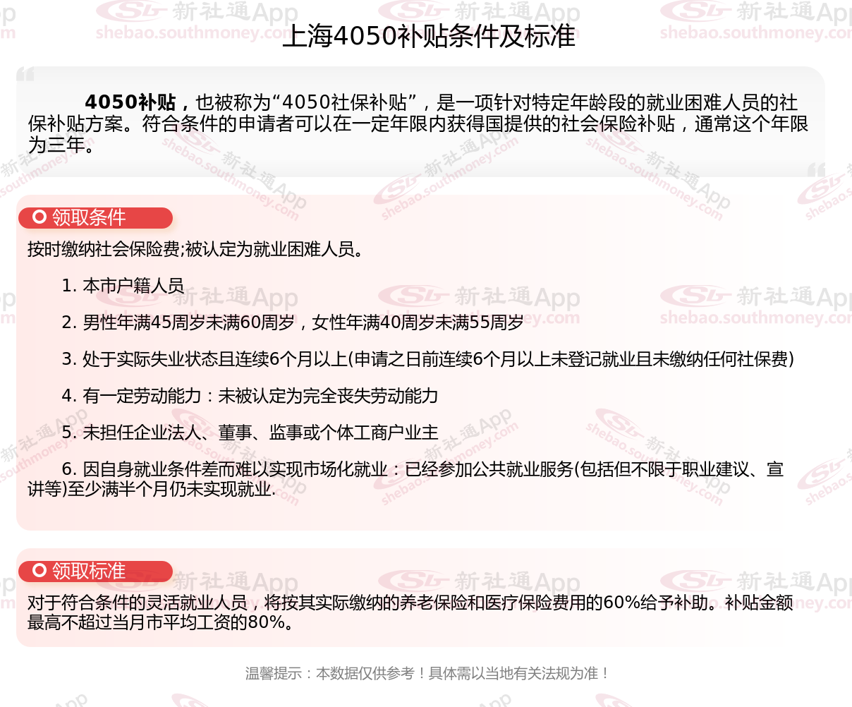 二、上海4050社保补贴新规2025年最新标准,2025年上海4050社保补贴条件是什么?