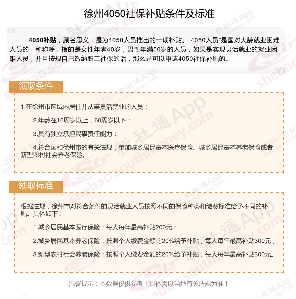 二、2025年徐州4050社保补贴标准是多少?领取条件是什么?