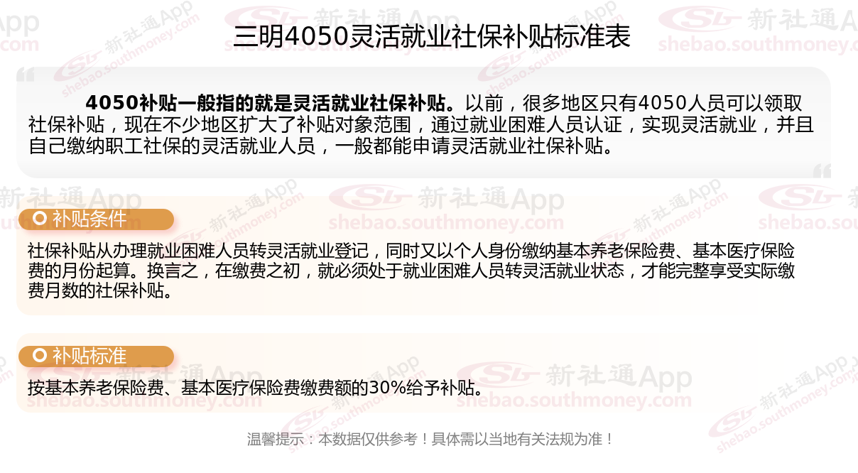 一、三明灵活就业人员领4050补贴能领到多少钱,补贴补多少呢?(三明4050社保补贴标准2025)