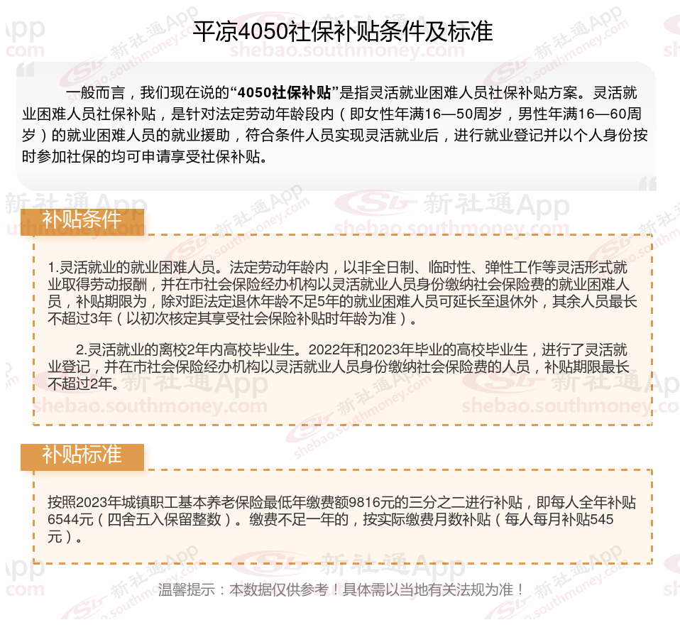一、2025年平凉灵活就业4050社保补贴标准是多少?申请条件是什么?