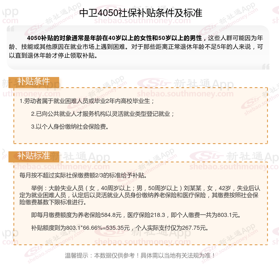 二、2025年中卫4050社保补贴标准,最新领取条件来了