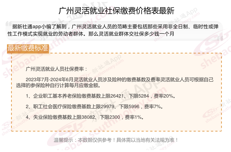 一、2025年广州灵活就业社保缴费标准表 广州灵活就业社保多少钱一个月?
