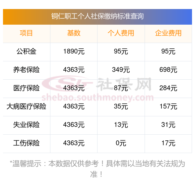 2025年铜仁社保缴费多少钱?下表是2024-2025年铜仁社保费用明细参考,新社通app-社保缴费查询工具提供的最新数据如下: