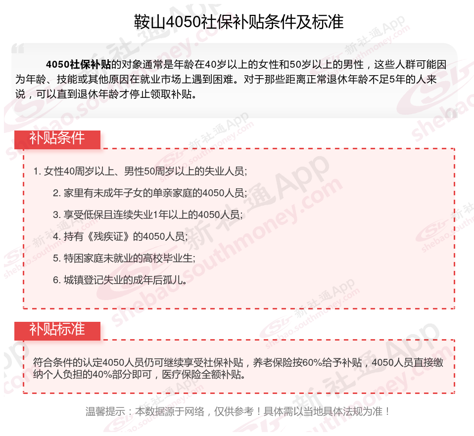 一、2025年鞍山4050社保补贴标准是怎么样的?鞍山4050一年可拿多少钱?