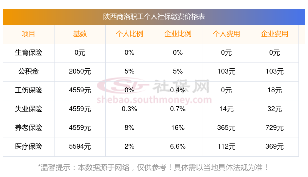陕西商洛缴费社保比例一览 社保公司和个人各交多少?下表是2024-2025年陕西商洛社保费用明细参考,新社通app-社保缴费查询工具提供的最新数据如下: