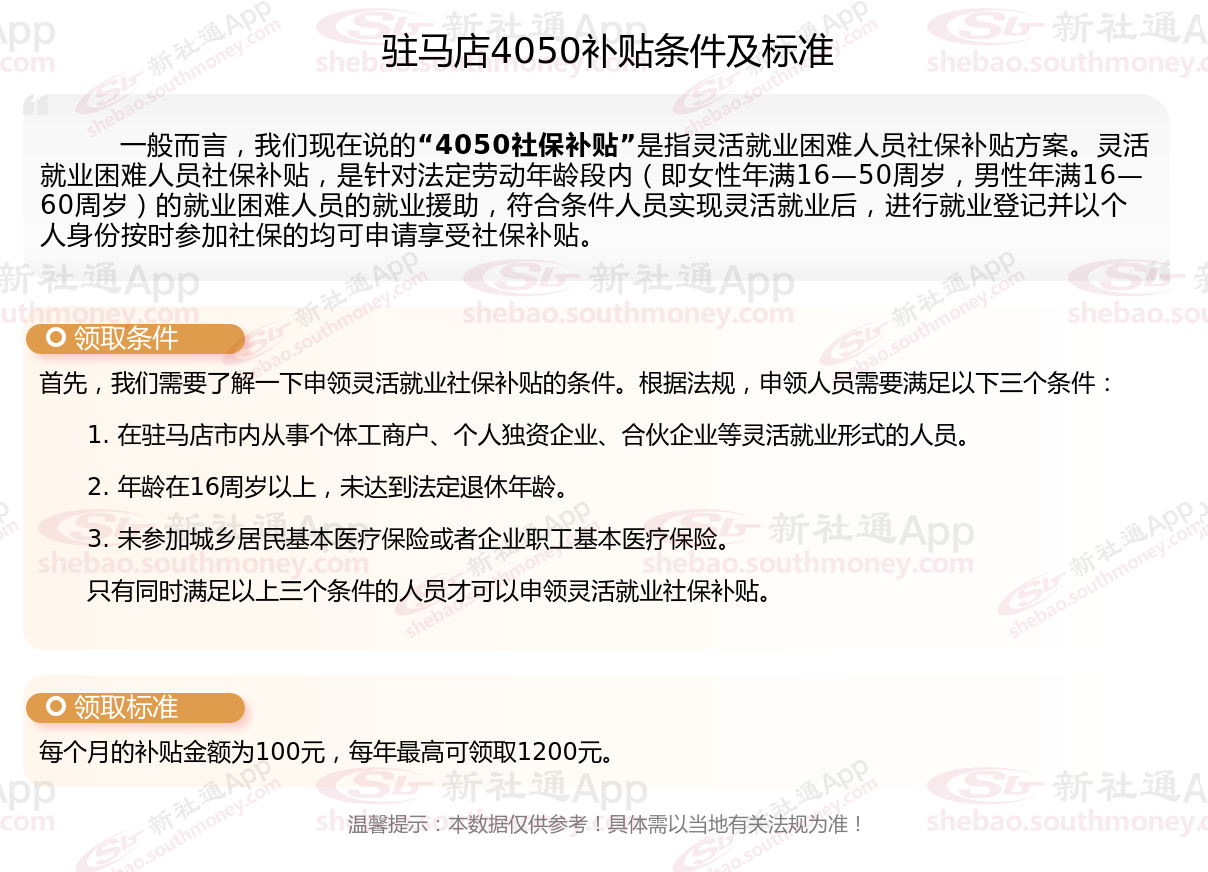 多数地区只有4050人员可以领取社保补贴,现在扩大了补贴对象及范围,通过就业困难人员认证,实现灵活就业,并且自己缴纳职工社保的灵活就业人员,一般都能申请灵活就业社保补贴。那么驻马店4050灵活就业社保补贴标准是多少钱?驻马店4050社保补贴条件是什么?接下来随新社通APP小编了解一下最新资讯。